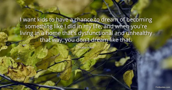 "I want kids to have a chance to dream of becoming something like I did in my life, and when you're living in a home that's dysfunctional and unhealthy that way, you don't dream like that." FixQuotes, 17 Jan. 2026, https://fixquotes.com/quotes/i-want-kids-to-have-a-chance-to-dream-of-becoming-73262/. Accessed 9 Feb. 2026.