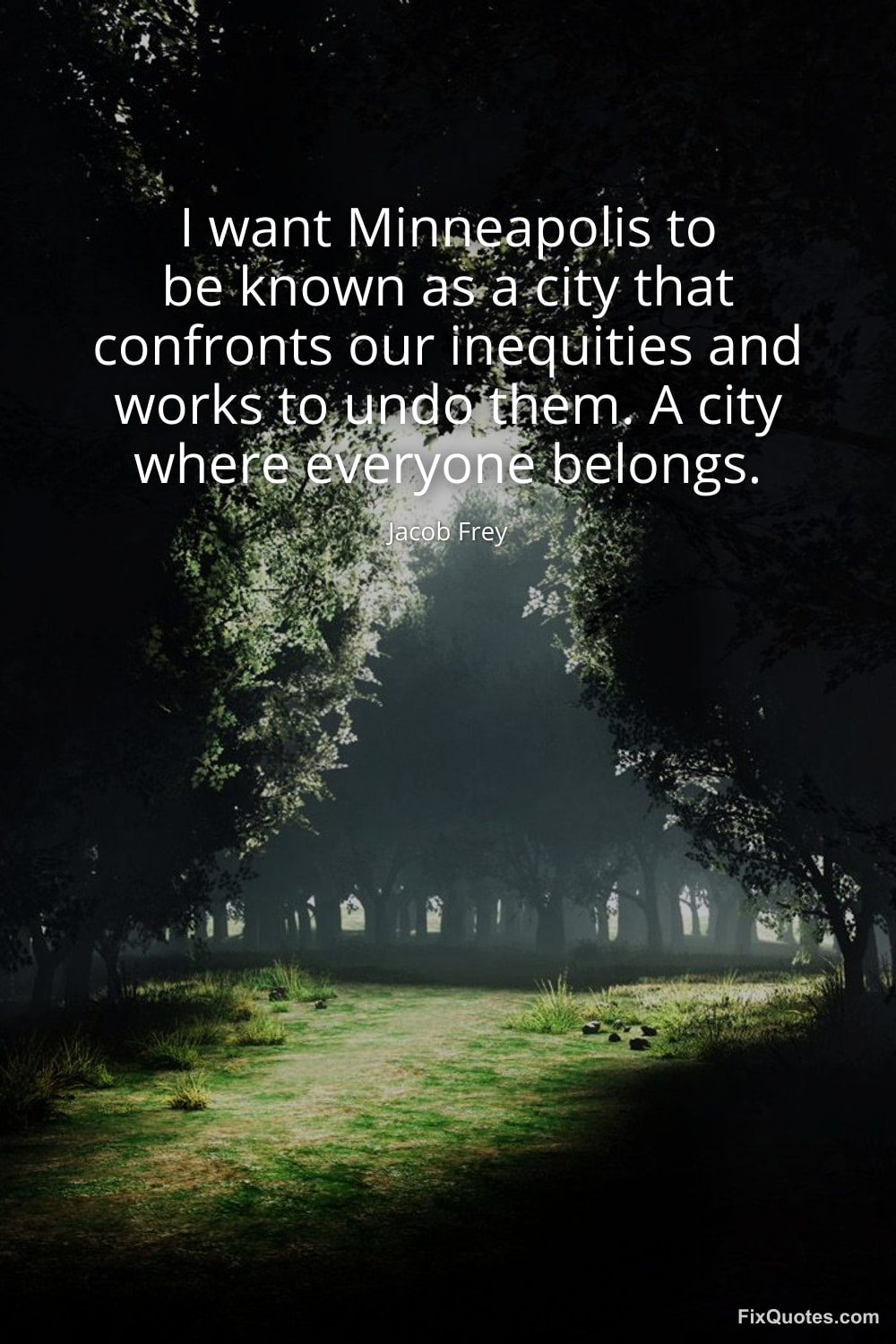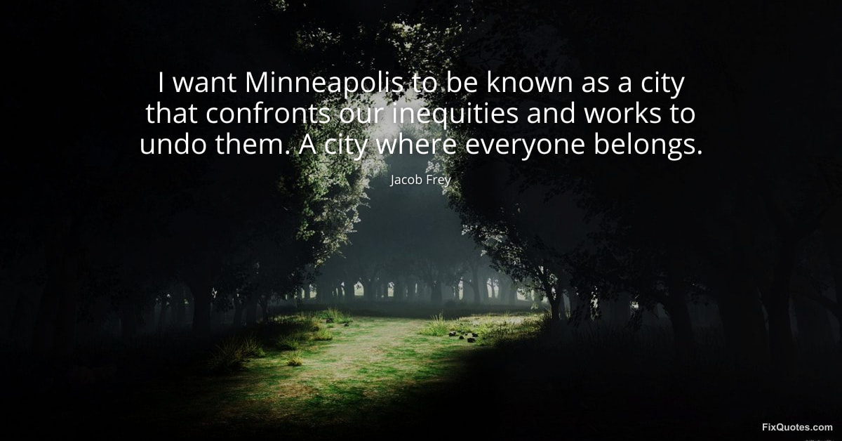 Frey, Jacob. (2026, January 25). I want Minneapolis to be known as a city that confronts our inequities and works to undo them. A city where everyone belongs. FixQuotes. https://fixquotes.com/quotes/i-want-minneapolis-to-be-known-as-a-city-that-184277/