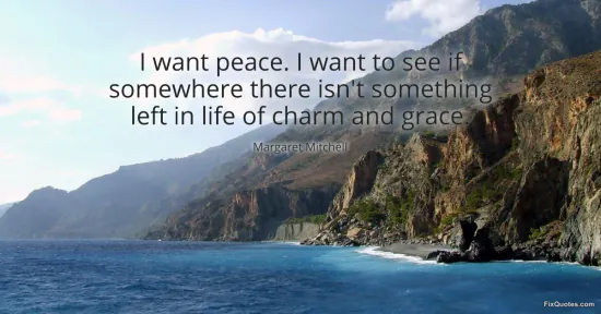 Mitchell, Margaret. (2026, January 18). I want peace. I want to see if somewhere there isn't something left in life of charm and grace. FixQuotes. https://fixquotes.com/quotes/i-want-peace-i-want-to-see-if-somewhere-there-23122/