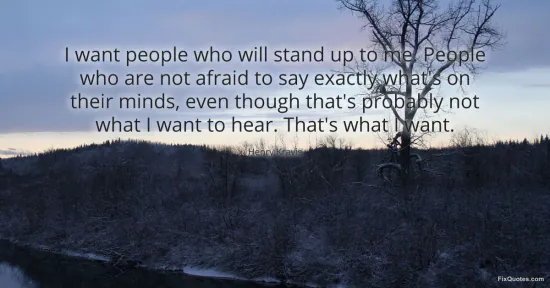 "I want people who will stand up to me. People who are not afraid to say exactly what's on their minds, even though that's probably not what I want to hear. That's what I want." FixQuotes, 17 Jan. 2026, https://fixquotes.com/quotes/i-want-people-who-will-stand-up-to-me-people-who-53150/. Accessed 26 Feb. 2026.