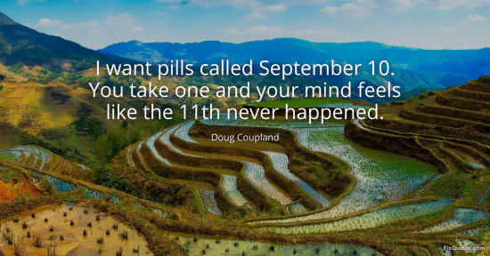 Coupland, Doug. "I want pills called September 10. You take one and your mind feels like the 11th never happened." FixQuotes. January 15, 2026. https://fixquotes.com/quotes/i-want-pills-called-september-10-you-take-one-and-141109/.