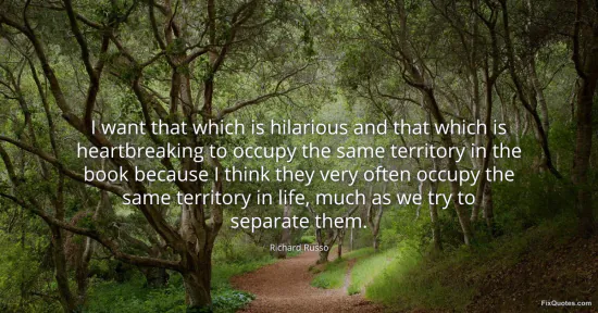 Russo, Richard. "I want that which is hilarious and that which is heartbreaking to occupy the same territory in the book because I think they very often occupy the same territory in life, much as we try to separate them." FixQuotes. January 15, 2026. https://fixquotes.com/quotes/i-want-that-which-is-hilarious-and-that-which-is-154052/.