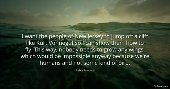Sambora, Richie. (2026, January 16). I want the people of New Jersey to jump off a cliff like Kurt Vonnegut so I can show them how to fly. This way, nobody needs to grow any wings, which would be impossible anyway because we're humans and not some kind of bird. FixQuotes. https://fixquotes.com/quotes/i-want-the-people-of-new-jersey-to-jump-off-a-94788/