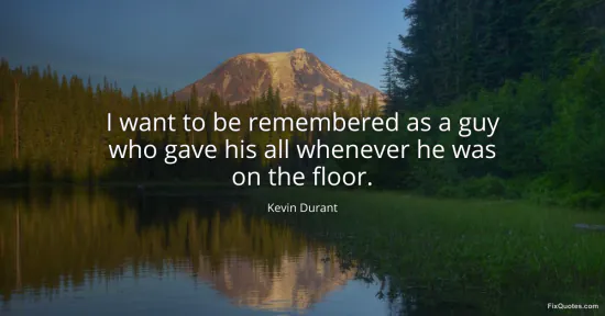 Durant, Kevin. "I want to be remembered as a guy who gave his all whenever he was on the floor." FixQuotes. January 25, 2026. https://fixquotes.com/quotes/i-want-to-be-remembered-as-a-guy-who-gave-his-all-184152/.