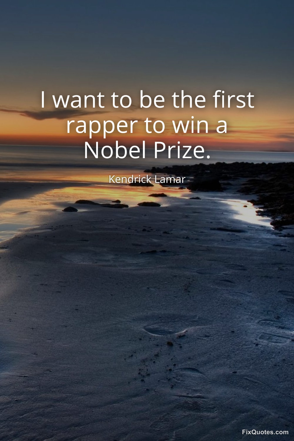 Lamar, Kendrick. (2026, February 1). I want to be the first rapper to win a Nobel Prize. FixQuotes. https://fixquotes.com/quotes/i-want-to-be-the-first-rapper-to-win-a-nobel-prize-184869/