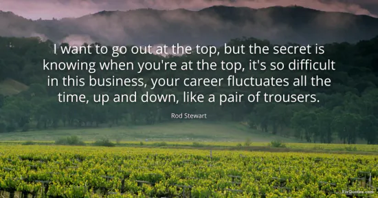 Stewart, Rod. "I want to go out at the top, but the secret is knowing when you're at the top, it's so difficult in this business, your career fluctuates all the time, up and down, like a pair of trousers." FixQuotes. January 16, 2026. https://fixquotes.com/quotes/i-want-to-go-out-at-the-top-but-the-secret-is-83639/.