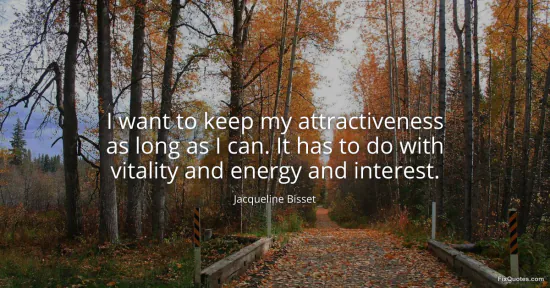 Bisset, Jacqueline. (2026, January 18). I want to keep my attractiveness as long as I can. It has to do with vitality and energy and interest. FixQuotes. https://fixquotes.com/quotes/i-want-to-keep-my-attractiveness-as-long-as-i-can-23429/