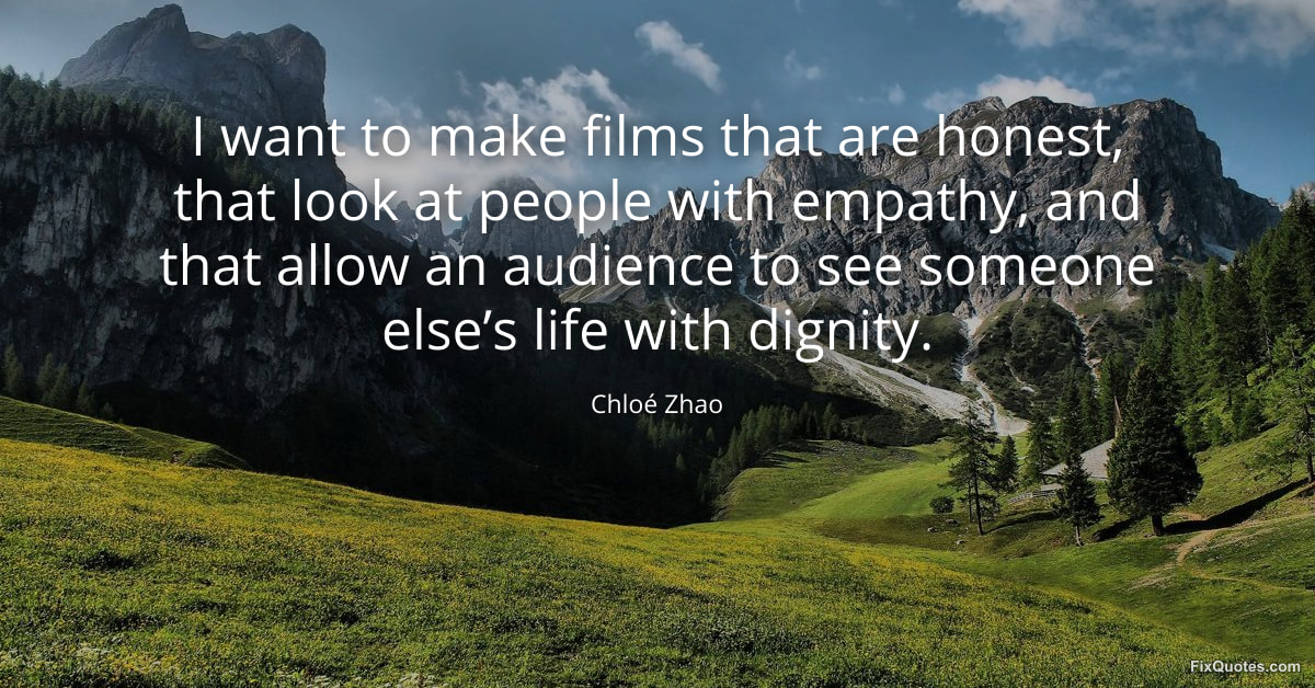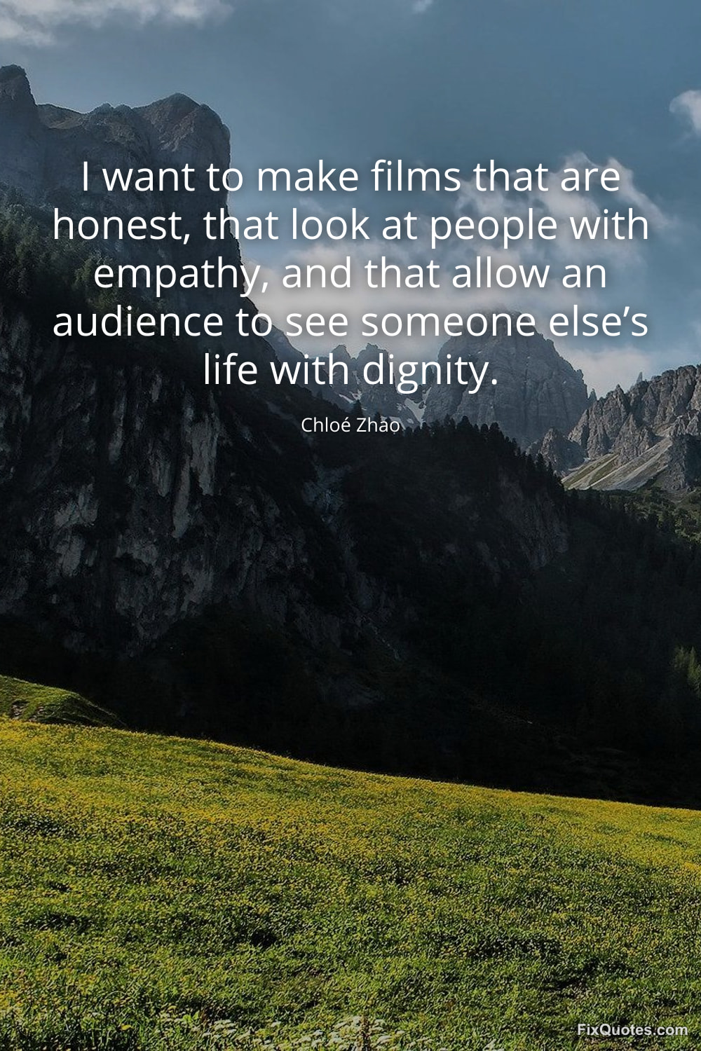 Zhao, Chloé. "I want to make films that are honest, that look at people with empathy, and that allow an audience to see someone else’s life with dignity." FixQuotes. January 25, 2026. https://fixquotes.com/quotes/i-want-to-make-films-that-are-honest-that-look-at-184250/.