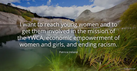 Ireland, Patricia. (2026, January 16). I want to reach young women and to get them involved in the mission of the YWCA, economic empowerment of women and girls, and ending racism. FixQuotes. https://fixquotes.com/quotes/i-want-to-reach-young-women-and-to-get-them-96246/