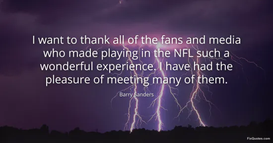 Sanders, Barry. "I want to thank all of the fans and media who made playing in the NFL such a wonderful experience. I have had the pleasure of meeting many of them." FixQuotes. January 15, 2026. https://fixquotes.com/quotes/i-want-to-thank-all-of-the-fans-and-media-who-140304/.