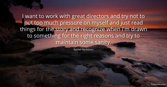McAdams, Rachel. (2026, January 16). I want to work with great directors and try not to put too much pressure on myself and just read things for the story and recognize when I'm drawn to something for the right reasons and try to maintain some sanity. FixQuotes. https://fixquotes.com/quotes/i-want-to-work-with-great-directors-and-try-not-109460/