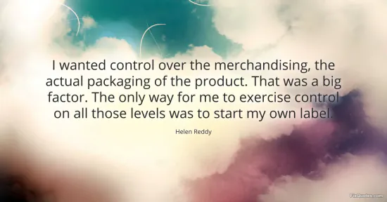Reddy, Helen. "I wanted control over the merchandising, the actual packaging of the product. That was a big factor. The only way for me to exercise control on all those levels was to start my own label." FixQuotes. January 15, 2026. https://fixquotes.com/quotes/i-wanted-control-over-the-merchandising-the-154537/.