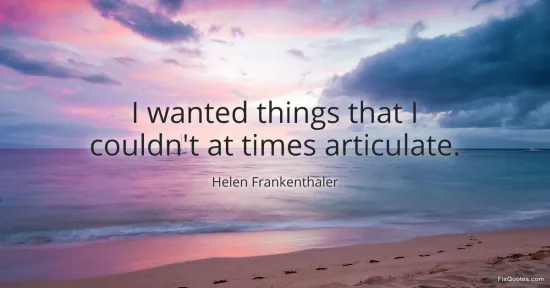 Desire, for Frankenthaler, isn’t a clean sentence; it’s a stain spreading faster than language can fence it in. "I wanted things that I couldn't at times articulate" reads like a quiet manifesto for postwar abstraction: ambition aimed at sensations, structures, and emotional climates that didn’t yet have names. The line’s power is in its modesty. She doesn’t claim mystical genius; she admits a gap. That gap is where her work lived.