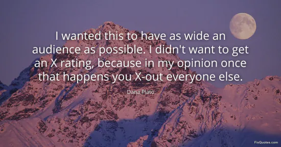 Plato, Dana. "I wanted this to have as wide an audience as possible. I didn't want to get an X rating, because in my opinion once that happens you X-out everyone else." FixQuotes. January 16, 2026. https://fixquotes.com/quotes/i-wanted-this-to-have-as-wide-an-audience-as-121185/.
