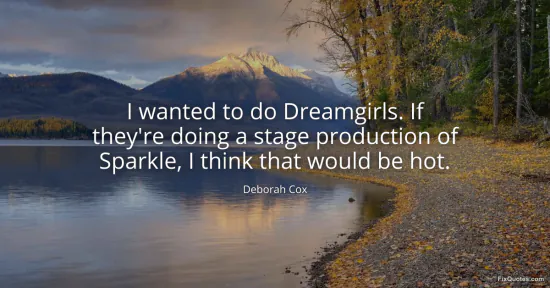 Cox, Deborah. "I wanted to do Dreamgirls. If they're doing a stage production of Sparkle, I think that would be hot." FixQuotes. January 17, 2026. https://fixquotes.com/quotes/i-wanted-to-do-dreamgirls-if-theyre-doing-a-stage-50991/.