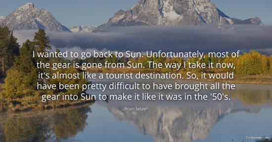 Setzer, Brian. (2026, January 17). I wanted to go back to Sun. Unfortunately, most of the gear is gone from Sun. The way I take it now, it's almost like a tourist destination. So, it would have been pretty difficult to have brought all the gear into Sun to make it like it was in the '50's. FixQuotes. https://fixquotes.com/quotes/i-wanted-to-go-back-to-sun-unfortunately-most-of-46582/