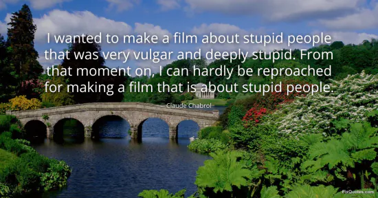 Chabrol, Claude. (2026, February 19). I wanted to make a film about stupid people that was very vulgar and deeply stupid. From that moment on, I can hardly be reproached for making a film that is about stupid people. FixQuotes. https://fixquotes.com/quotes/i-wanted-to-make-a-film-about-stupid-people-that-47520/