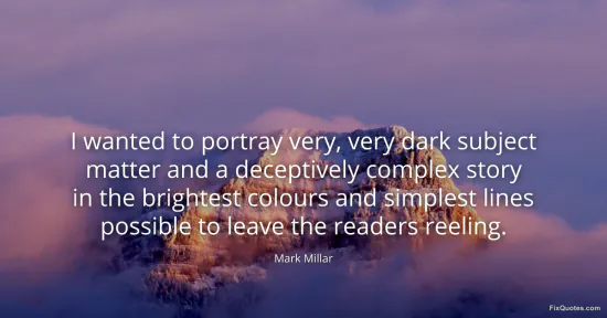 Millar, Mark. (2026, January 18). I wanted to portray very, very dark subject matter and a deceptively complex story in the brightest colours and simplest lines possible to leave the readers reeling. FixQuotes. https://fixquotes.com/quotes/i-wanted-to-portray-very-very-dark-subject-matter-20885/