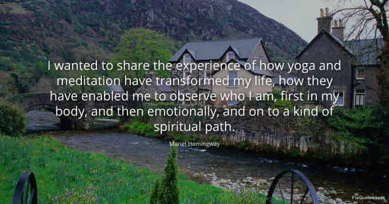Hemingway, Mariel. (2026, January 16). I wanted to share the experience of how yoga and meditation have transformed my life, how they have enabled me to observe who I am, first in my body, and then emotionally, and on to a kind of spiritual path. FixQuotes. https://fixquotes.com/quotes/i-wanted-to-share-the-experience-of-how-yoga-and-99497/