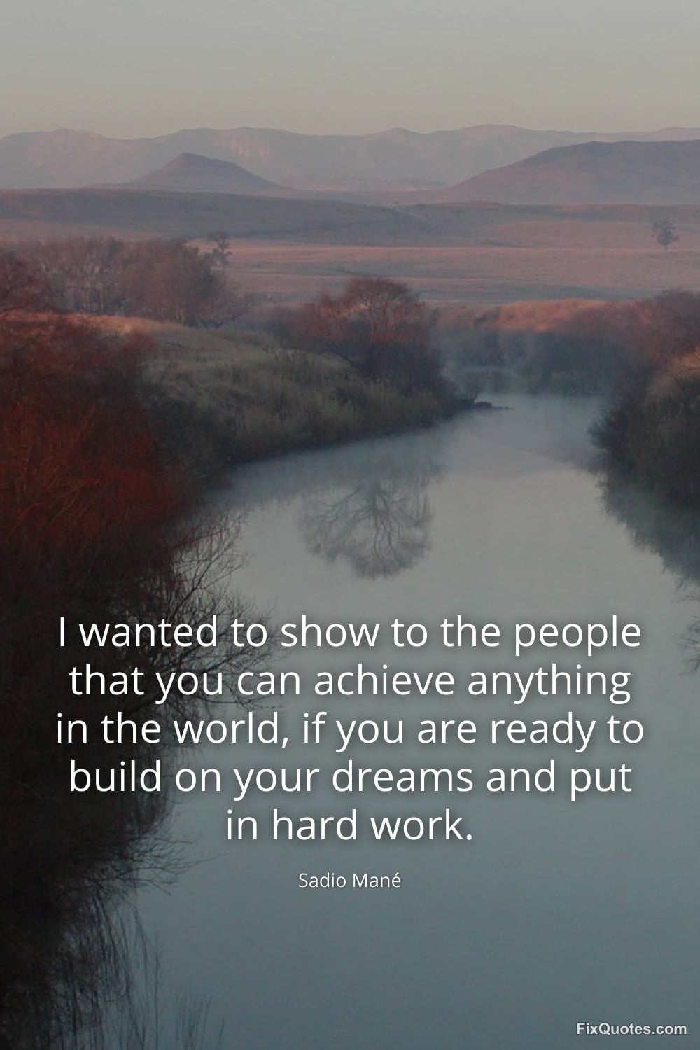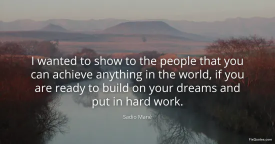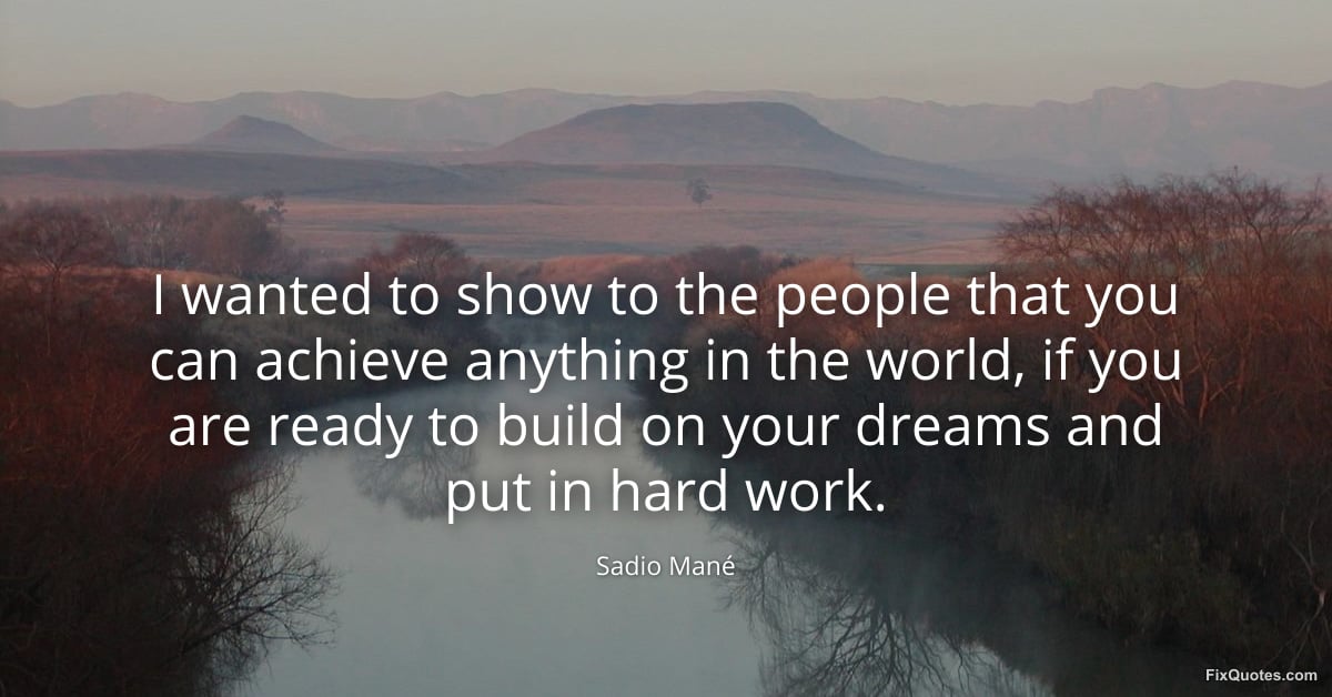 Mané, Sadio. (2026, February 17). I wanted to show to the people that you can achieve anything in the world, if you are ready to build on your dreams and put in hard work. FixQuotes. https://fixquotes.com/quotes/i-wanted-to-show-to-the-people-that-you-can-185583/