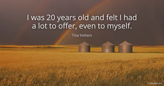 Yothers, Tina. "I was 20 years old and felt I had a lot to offer, even to myself." FixQuotes. January 16, 2026. https://fixquotes.com/quotes/i-was-20-years-old-and-felt-i-had-a-lot-to-offer-113906/.