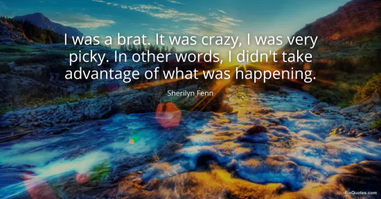 Fenn, Sherilyn. "I was a brat. It was crazy, I was very picky. In other words, I didn't take advantage of what was happening." FixQuotes. January 17, 2026. https://fixquotes.com/quotes/i-was-a-brat-it-was-crazy-i-was-very-picky-in-78210/.