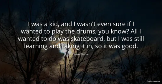 Barker, Travis. "I was a kid, and I wasn't even sure if I wanted to play the drums, you know? All I wanted to do was skateboard, but I was still learning and taking it in, so it was good." FixQuotes. January 16, 2026. https://fixquotes.com/quotes/i-was-a-kid-and-i-wasnt-even-sure-if-i-wanted-to-117620/.