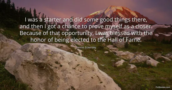 Eckersley, Dennis. "I was a starter and did some good things there, and then I got a chance to prove myself as a closer. Because of that opportunity, I was blessed with the honor of being elected to the Hall of Fame." FixQuotes. January 17, 2026. https://fixquotes.com/quotes/i-was-a-starter-and-did-some-good-things-there-76605/.