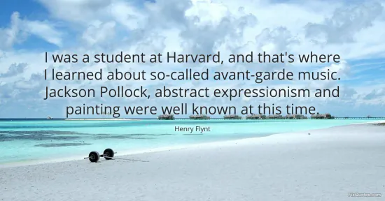 Flynt, Henry. "I was a student at Harvard, and that's where I learned about so-called avant-garde music. Jackson Pollock, abstract expressionism and painting were well known at this time." FixQuotes. January 15, 2026. https://fixquotes.com/quotes/i-was-a-student-at-harvard-and-thats-where-i-146151/.