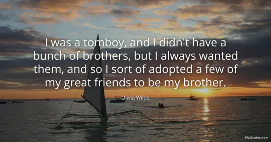 Wilde, Olivia. (2026, February 17). I was a tomboy, and I didn't have a bunch of brothers, but I always wanted them, and so I sort of adopted a few of my great friends to be my brother. FixQuotes. https://fixquotes.com/quotes/i-was-a-tomboy-and-i-didnt-have-a-bunch-of-97676/