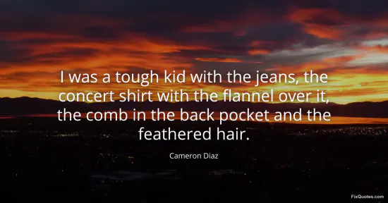 Diaz, Cameron. (2026, January 17). I was a tough kid with the jeans, the concert shirt with the flannel over it, the comb in the back pocket and the feathered hair. FixQuotes. https://fixquotes.com/quotes/i-was-a-tough-kid-with-the-jeans-the-concert-44561/