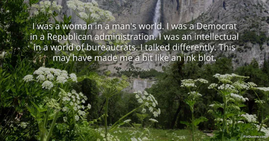Kirkpatrick, Jeane. (2026, January 18). I was a woman in a man's world. I was a Democrat in a Republican administration. I was an intellectual in a world of bureaucrats. I talked differently. This may have made me a bit like an ink blot. FixQuotes. https://fixquotes.com/quotes/i-was-a-woman-in-a-mans-world-i-was-a-democrat-in-12203/