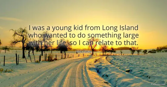 Falco, Edie. (2026, January 16). I was a young kid from Long Island who wanted to do something large with her life, so I can relate to that. FixQuotes. https://fixquotes.com/quotes/i-was-a-young-kid-from-long-island-who-wanted-to-135971/