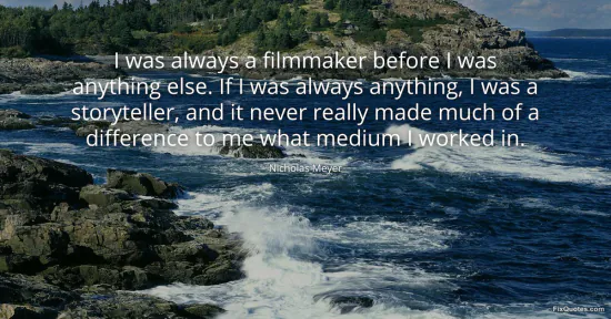 Meyer, Nicholas. "I was always a filmmaker before I was anything else. If I was always anything, I was a storyteller, and it never really made much of a difference to me what medium I worked in." FixQuotes. January 15, 2026. https://fixquotes.com/quotes/i-was-always-a-filmmaker-before-i-was-anything-164319/.