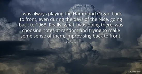 Emerson, Keith. (2026, February 18). I was always playing the Hammond Organ back to front, even during the days of the Nice, going back to 1968. Really, what I was doing there, was choosing notes at random and trying to make some sense of them, improvising back to front. FixQuotes. https://fixquotes.com/quotes/i-was-always-playing-the-hammond-organ-back-to-72119/