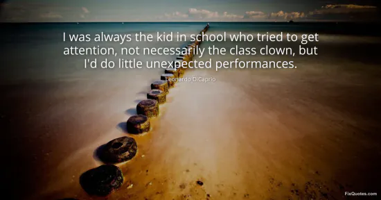 DiCaprio, Leonardo. (2026, January 18). I was always the kid in school who tried to get attention, not necessarily the class clown, but I'd do little unexpected performances. FixQuotes. https://fixquotes.com/quotes/i-was-always-the-kid-in-school-who-tried-to-get-22769/