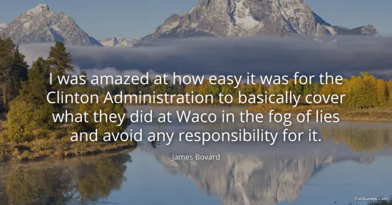 Bovard, James. (2026, January 16). I was amazed at how easy it was for the Clinton Administration to basically cover what they did at Waco in the fog of lies and avoid any responsibility for it. FixQuotes. https://fixquotes.com/quotes/i-was-amazed-at-how-easy-it-was-for-the-clinton-86033/