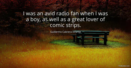 Infante, Guillermo Cabrera. "I was an avid radio fan when I was a boy, as well as a great lover of comic strips." FixQuotes. January 17, 2026. https://fixquotes.com/quotes/i-was-an-avid-radio-fan-when-i-was-a-boy-as-well-60438/.