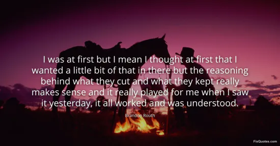 Routh, Brandon. (2026, January 17). I was at first but I mean I thought at first that I wanted a little bit of that in there but the reasoning behind what they cut and what they kept really makes sense and it really played for me when I saw it yesterday, it all worked and was understood. FixQuotes. https://fixquotes.com/quotes/i-was-at-first-but-i-mean-i-thought-at-first-that-63083/