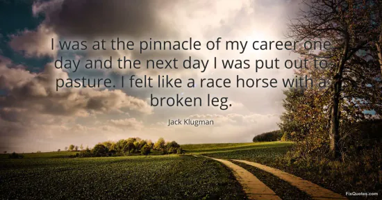 Klugman, Jack. (2026, January 15). I was at the pinnacle of my career one day and the next day I was put out to pasture. I felt like a race horse with a broken leg. FixQuotes. https://fixquotes.com/quotes/i-was-at-the-pinnacle-of-my-career-one-day-and-170921/