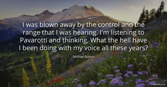 Bolton, Michael. (2026, January 17). I was blown away by the control and the range that I was hearing. I'm listening to Pavarotti and thinking, What the hell have I been doing with my voice all these years? FixQuotes. https://fixquotes.com/quotes/i-was-blown-away-by-the-control-and-the-range-64158/