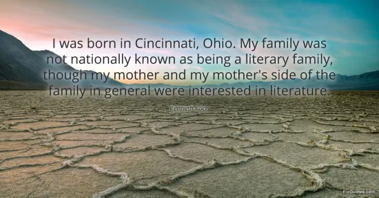 "I was born in Cincinnati, Ohio. My family was not nationally known as being a literary family, though my mother and my mother's side of the family in general were interested in literature." FixQuotes, 16 Jan. 2026, https://fixquotes.com/quotes/i-was-born-in-cincinnati-ohio-my-family-was-not-84309/. Accessed 28 Feb. 2026.