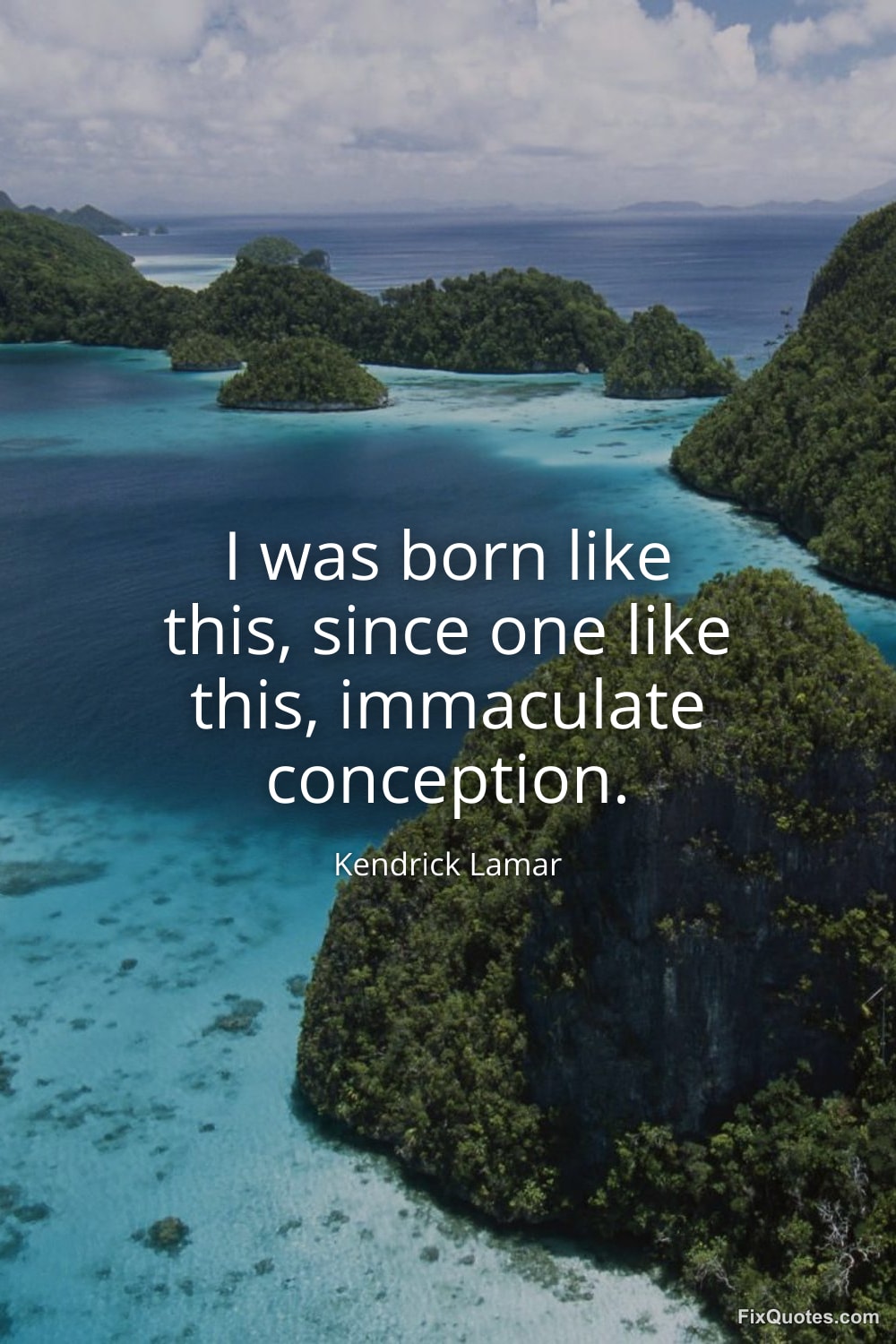 Lamar, Kendrick. "I was born like this, since one like this, immaculate conception." FixQuotes. February 1, 2026. https://fixquotes.com/quotes/i-was-born-like-this-since-one-like-this-184862/.