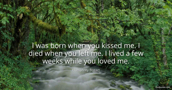 Bogart, Humphrey. (2026, January 17). I was born when you kissed me. I died when you left me. I lived a few weeks while you loved me. FixQuotes. https://fixquotes.com/quotes/i-was-born-when-you-kissed-me-i-died-when-you-69624/