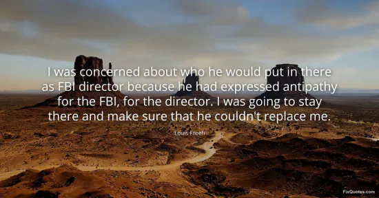 Freeh, Louis. "I was concerned about who he would put in there as FBI director because he had expressed antipathy for the FBI, for the director. I was going to stay there and make sure that he couldn't replace me." FixQuotes. January 16, 2026. https://fixquotes.com/quotes/i-was-concerned-about-who-he-would-put-in-there-107892/.