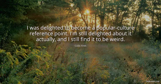 Firth, Colin. (2026, January 17). I was delighted to become a popular-culture reference point. I'm still delighted about it actually, and I still find it to be weird. FixQuotes. https://fixquotes.com/quotes/i-was-delighted-to-become-a-popular-culture-54462/