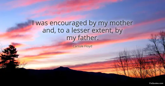 Floyd, Carlisle. "I was encouraged by my mother and, to a lesser extent, by my father." FixQuotes. January 15, 2026. https://fixquotes.com/quotes/i-was-encouraged-by-my-mother-and-to-a-lesser-141825/.