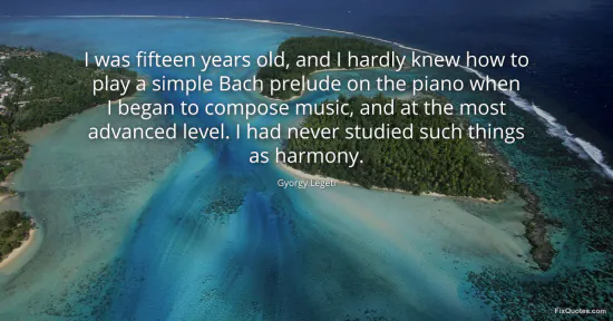 Legeti, Gyorgy. "I was fifteen years old, and I hardly knew how to play a simple Bach prelude on the piano when I began to compose music, and at the most advanced level. I had never studied such things as harmony." FixQuotes. January 17, 2026. https://fixquotes.com/quotes/i-was-fifteen-years-old-and-i-hardly-knew-how-to-67967/.