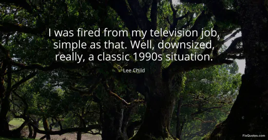 Child, Lee. (2026, January 17). I was fired from my television job, simple as that. Well, downsized, really, a classic 1990s situation. FixQuotes. https://fixquotes.com/quotes/i-was-fired-from-my-television-job-simple-as-that-70727/