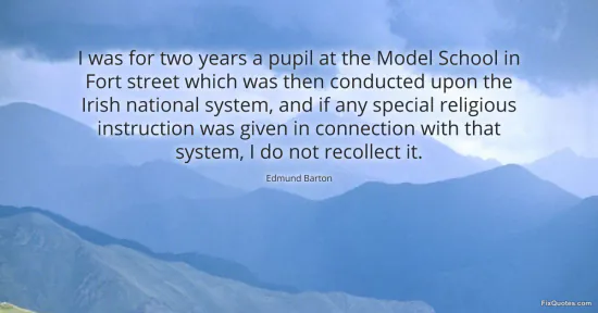 Barton, Edmund. "I was for two years a pupil at the Model School in Fort street which was then conducted upon the Irish national system, and if any special religious instruction was given in connection with that system, I do not recollect it." FixQuotes. January 17, 2026. https://fixquotes.com/quotes/i-was-for-two-years-a-pupil-at-the-model-school-57265/.